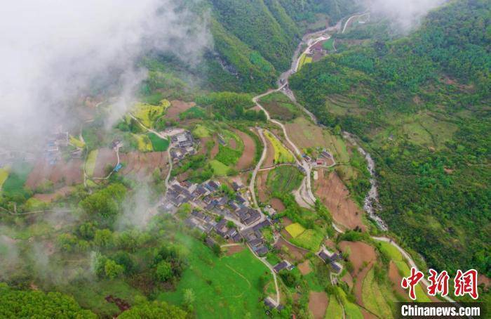 位于甘肃省陇南市徽县嘉陵镇北部的稻坪村,幽静、秀丽,春气富足,犹如一处秘境。图为4月中旬航拍图。 高展 摄