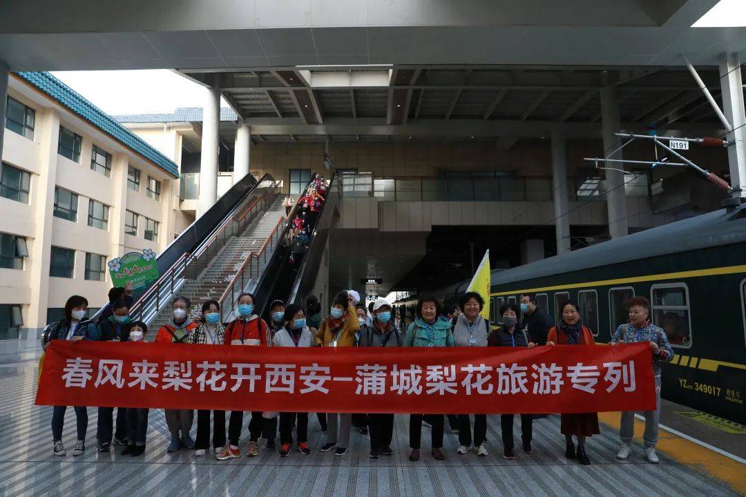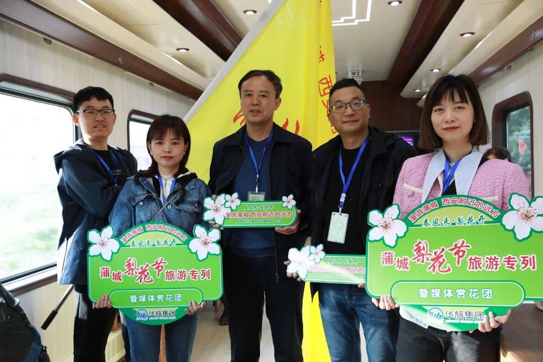 首列蒲城梨花节旅游专列,是由陕西华山旅游集团和蒲城县委县政府,携手陕西省旅行社协会及国铁西安局联合打造,着力为西安游客量身定制春游踏青、漫游蒲城赏梨花之旅,让西安人走进蒲城,赏梨花、品美食、购特产。以花为媒,文旅融合,促进乡村经济振兴,让赏花经济得到充分发挥,展现蒲城旅游发展新IP。为古都长安与将相故里蒲城共享一桌文旅融合、乡村振兴旅游大餐,让市民享受轻松舒适休闲的铁路旅行新时尚。