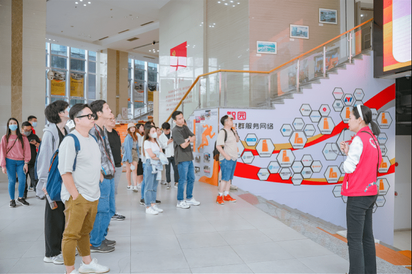 研学团第三站走进桃源街道南山智园党群服务中心,现场观摩园区的治理模式、服务功能及运营模式。据介绍,南山智园位于“大沙河创新走廊”,是深圳国家自主创新示范区——留仙洞、大学城片区的重要区块,也是南山区的实践创新基地,拥有包括优必选、深信服等在内的190家高新技术企业。该党群服务中心包含党建书吧、新时代大讲堂、艺术文化展示长廊、科创长廊、人才服务区等多种功能区,同时结合辖区党员群众需求,设置了政企服务、产业政策支持、工青妇、园区、党建等服务窗口,提供70项政企服务,为基层党组织提升组织力,更好地服务、教育和凝聚群众提供了功能齐全的共享空间和红色家园。此站参观,让港澳青年进一步了解了深圳的科技创新与红色文化。