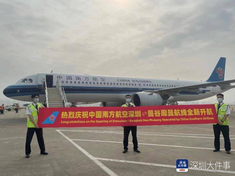 南都讯 4月20日,南航正式开通深圳至泰国曼谷廊曼航线。首个航班CZ6035于当日9时35分从深圳宝安国际机场起飞,并于11时35分平安落地泰国曼谷廊曼机场。