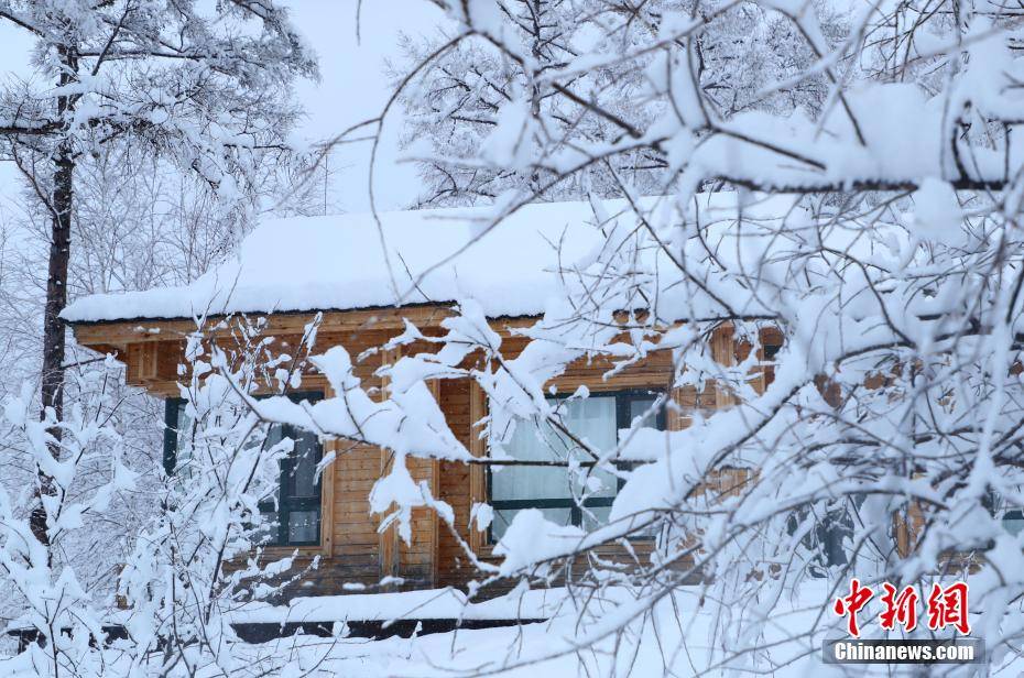木屋在瑞雪的掩映下,宛若人间仙境。