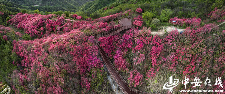 中安在线 中安新闻客户端讯 4月18日,在六安市金寨县吴家店镇境内的太平山,万亩野生杜鹃盛开,迎来了最佳观赏期。