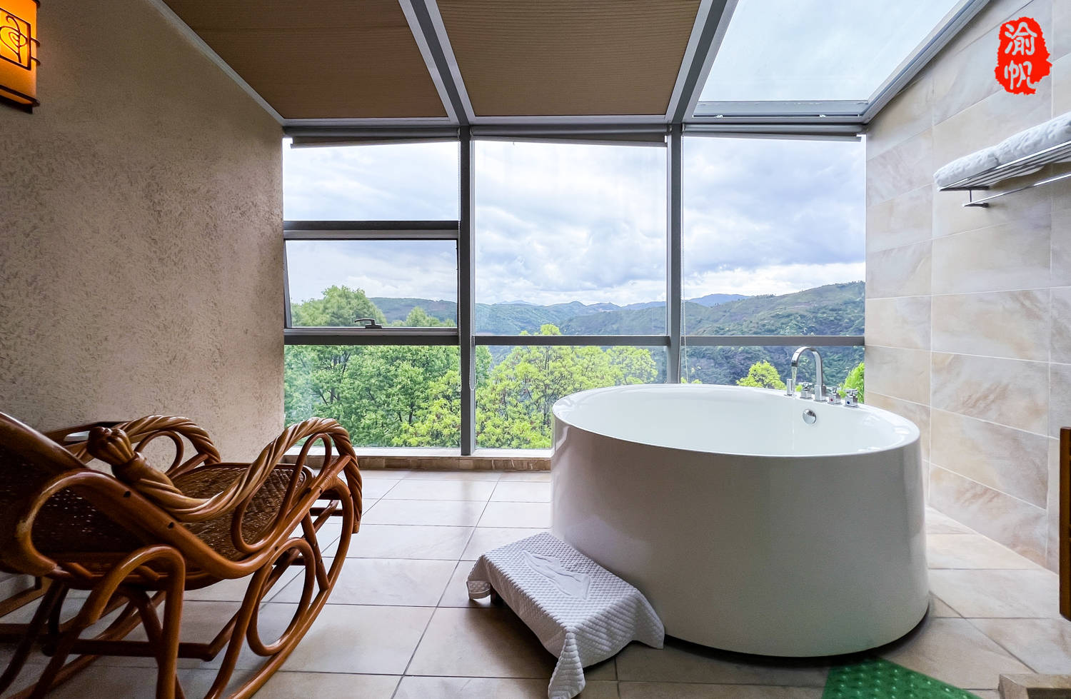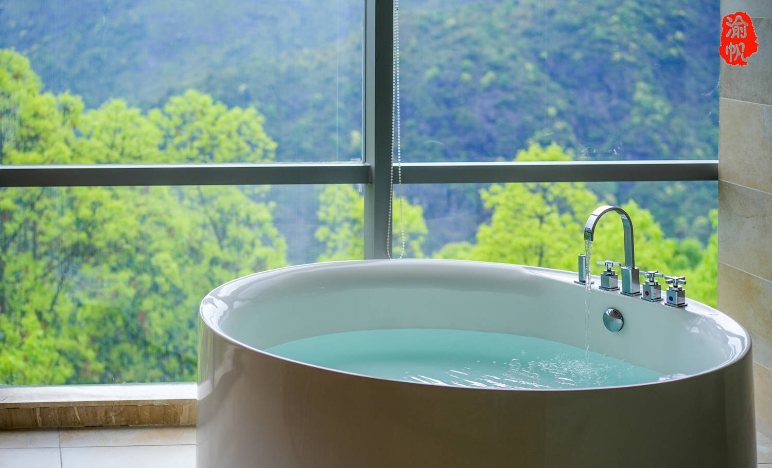 特别值得推荐的是,房间的温泉浴室很大,前面是超大落地玻璃窗,顶上是阳光天幕,窗外便是鸟语花香的华东大峡谷,若是偶上好的天气,可以一边躺在房间享受氡泉的滋养,一边可以欣赏漫开的繁星,想想都令人心动。这样的环境,大家喜欢吗?