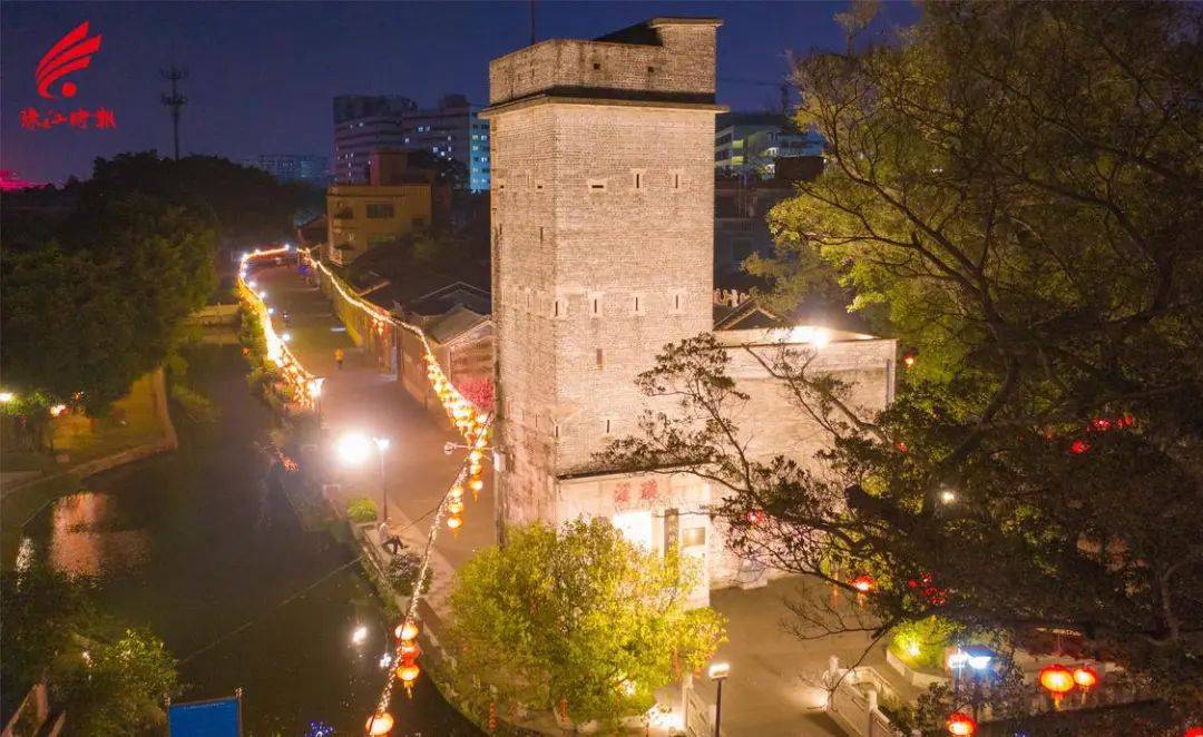 炮楼与村居倒影成趣。