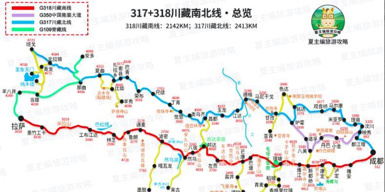 川藏线一共有3条,一是人们熟知的318川藏南线,二是与318川藏线几乎平行的317川藏北线,还有一条“川藏中线”,几乎由350国道与349国道拼接而成。