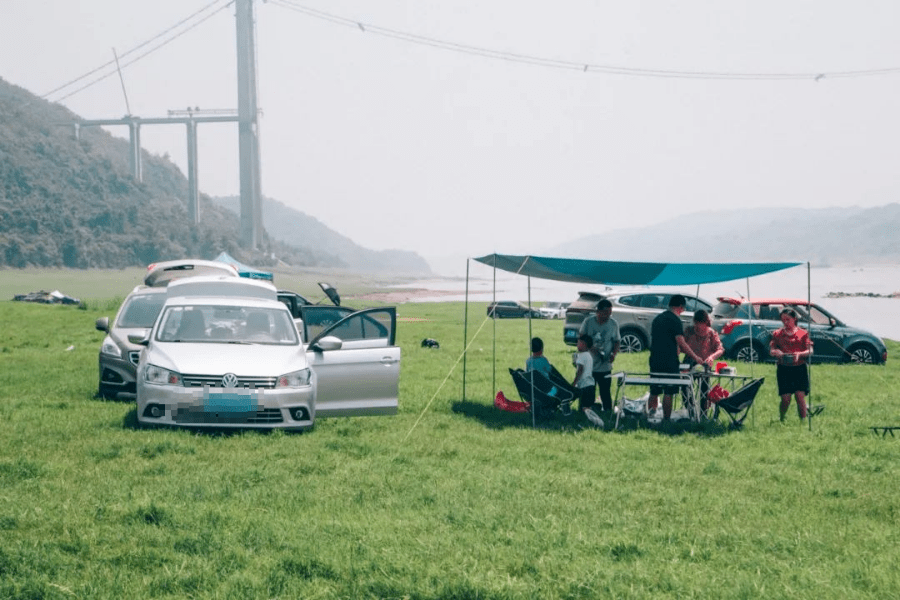 在临近江边的区域,有预留地露营、扎帐篷的地方。不少游客在江边搭好天幕、帐篷,支起烧烤架,在自然美丽的环境中举杯畅聊。