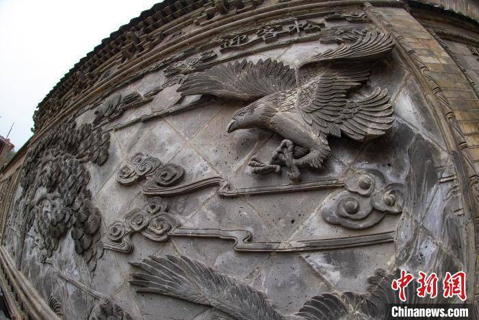 天门村里的砖雕《黄鹤楼》。 张文军 摄