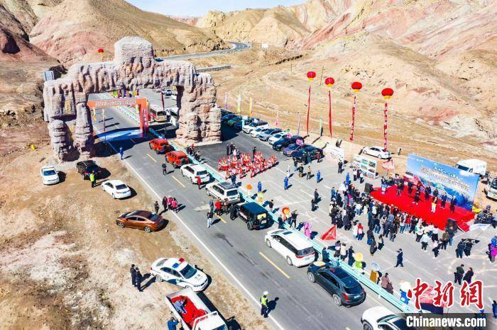 20日,“环游天山·千色昌吉”--百里丹霞风景道百车千人自驾活动发车仪式启动。 图为发车仪式现场。 何龙 摄