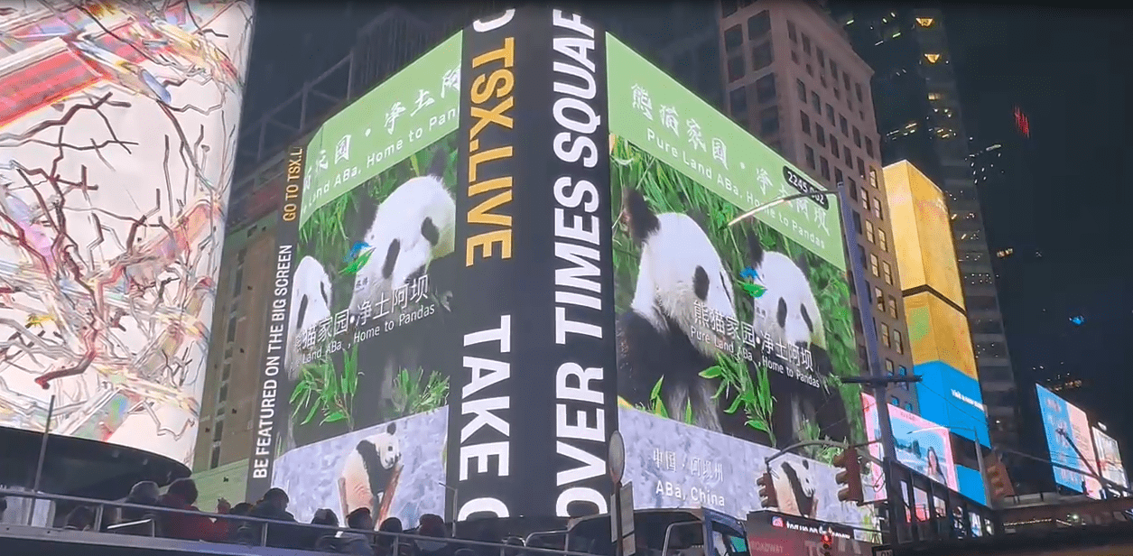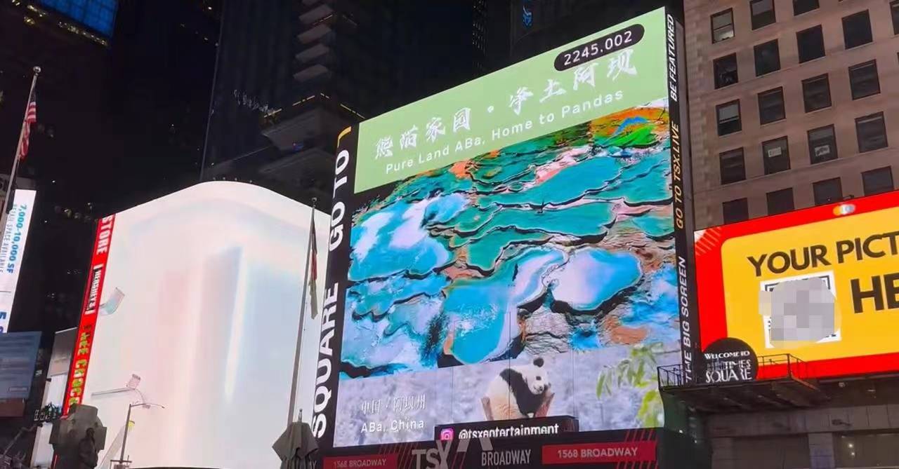 4月20日,阿坝州九大文旅品牌主题宣传片在美国纽约时代广场的户外巨屏上闪亮登场,吸引了无数海外友人的目光。“熊猫家园·净土阿坝”这片神奇净土向全世界发出邀请。