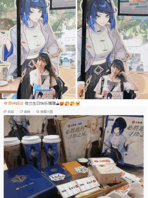 不少喜爱夜兰的玩家还特意来到必胜客打卡,点一份夜兰套餐,与夜兰的超大立绘合影,为夜兰的生日庆祝。