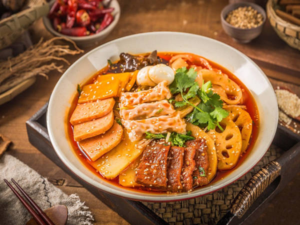 首先,给大家介绍串串,串串又分为热锅串串和冷锅串串,热锅串串类似于火锅,它和火锅一样,大桌架锅边吃边煮,在蘸上每家店秘制的碟料,冲击着你的味蕾。