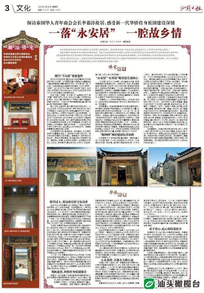 多年来,李嘉淳热心公益,一直致力于在海外讲好祖国故事,传播中国好声音,为推动中泰两国及家乡企业的经贸合作而努力牵线搭桥。近日,记者探访他在简朴村的故居“永安居”,了解他情系故土,为家乡发展添砖加瓦的感人故事。