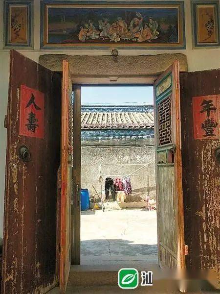 驻足“凹肚”门楼前,“永安居”三个金黄色大字下,是“财喜”“贵寿”两枚大方印,方印上还浮雕一对栩栩如生的狮子。环绕门楣门楼的是大小不等的六幅彩绘壁画和有着“竹报平安”、“大吉大利”美好寓意的描金画,精勾细画,把门楼装饰得极为精美。