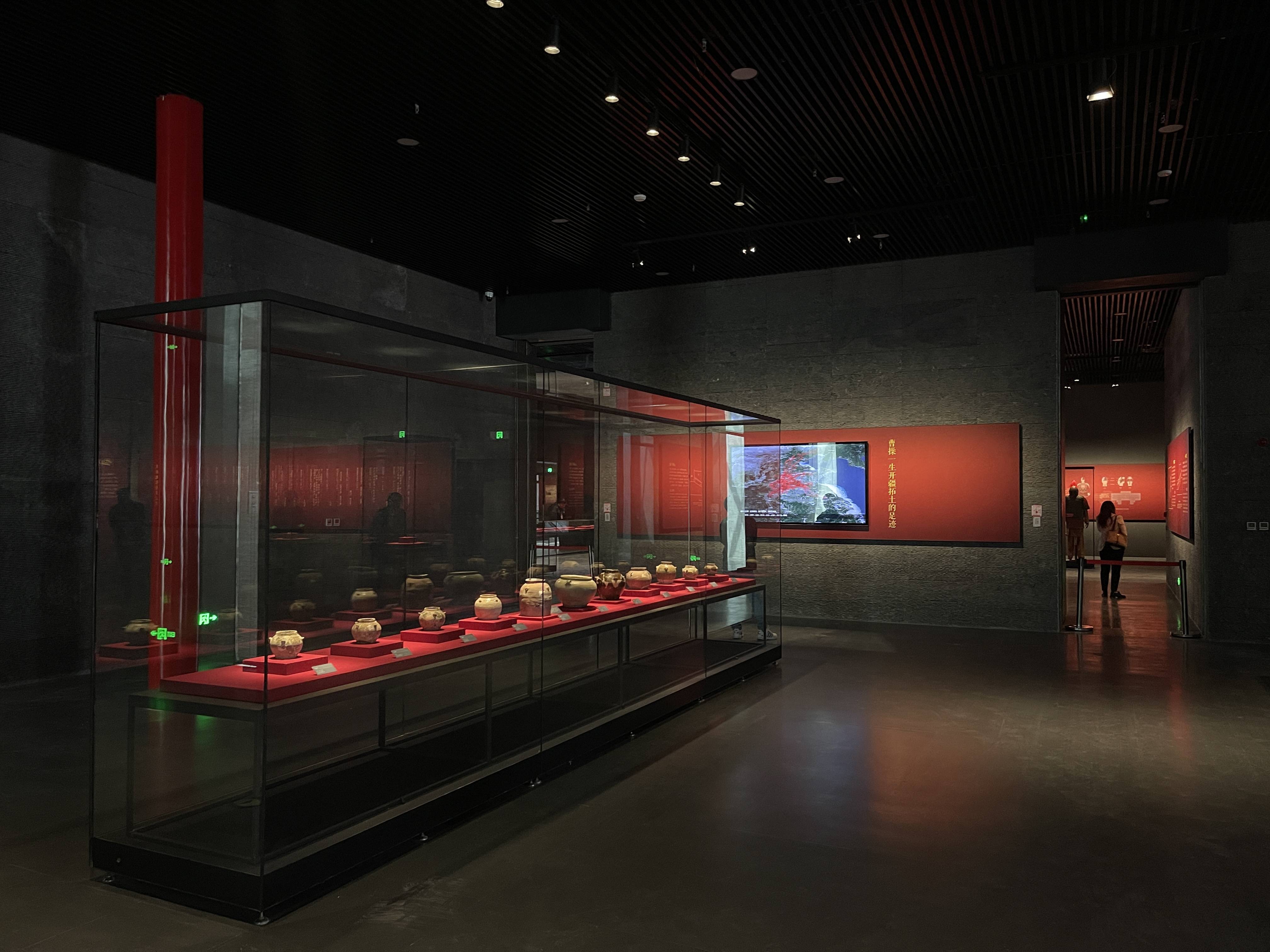 博物馆基本陈列分为遗址展示和室内展示两个区域。遗址展示区域面积18000余平方米,立体地展示了高陵陵园内的曹操墓本体、神道、陵前建筑基址、围壕、垣墙、陪葬墓等,游客可以通过栈道近距离参观这些遗址。