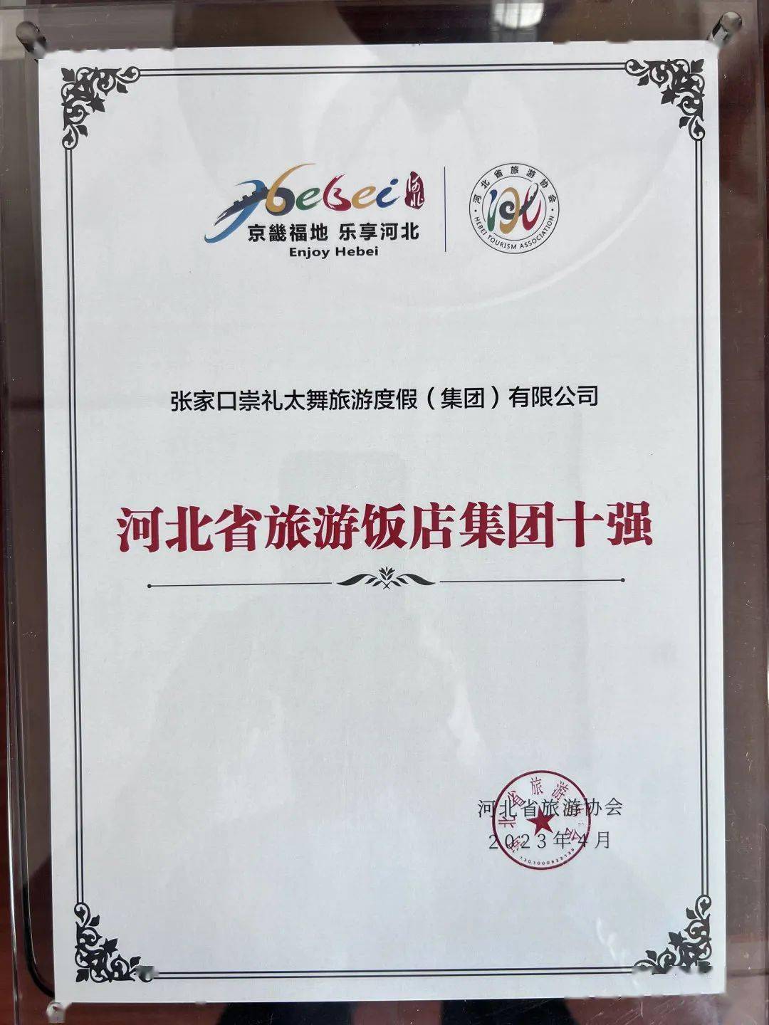 其中,河北省崇礼太舞旅游度假(集团)有限公司被评选为河北省旅游饭店集团十强、凯悦嘉轩酒店荣获国际品牌酒店河北十强、太舞源宿酒店荣获河北省十佳度假旅游饭店、太舞小镇魏颖荣获河北省优秀职业经理人、太舞酒店荣获河北省星级旅游饭店管理服务和产品创新案例。