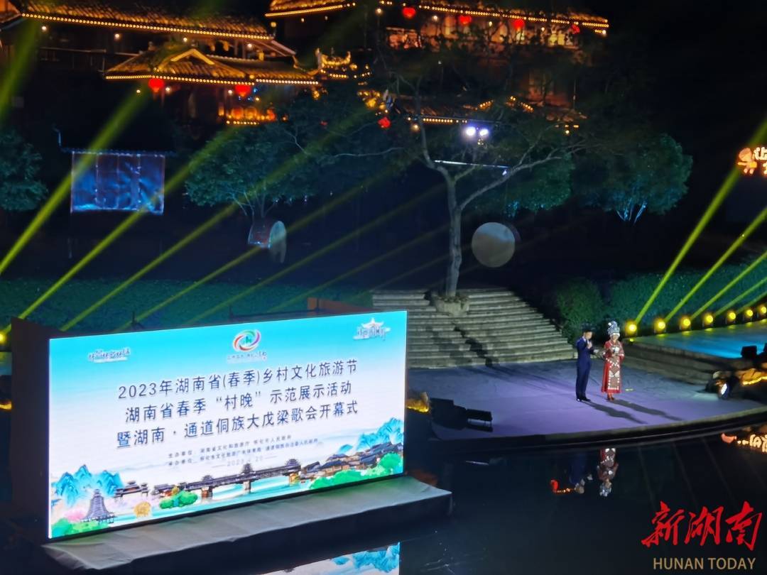 华声在线4月20日讯(记者张笛 通讯员吴祥淼 粟勇主)4月20日晚,2023年湖南省(春季)乡村文化旅游节、湖南省春季“村晚”示范展示活动暨湖南·通道侗族大戊梁歌会在怀化市通道侗族自治县皇都侗文化村景区开幕。