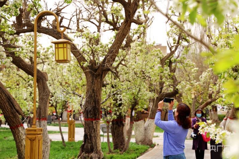 央广网兰州4月20日消息(记者李红军)4月20日上午,“彩虹张掖·乐游甘州”2023年“百年梨园焕新颜”梨花节在甘肃省张掖市甘州区开幕,吸引了众多市民和游客前来踏青,欣赏“千树梨花千树雪”的盛景。