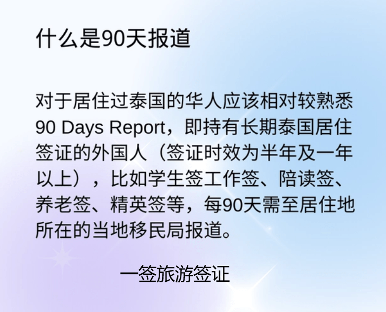 这篇文章一签泰国签证处给大家全面的讲解一下关于泰国长期签证九十天报道吧,对于居住过泰国的华人应该相对较熟悉九十天报道,即持有长期泰国居住签证的外国人,比如学生签工作签、陪读签、养老签、精英签等,每90天需至居住地所在的当地移民局报道。