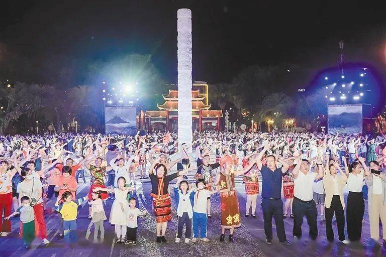 五指山市举行千人共同舞活动,吸引游客和市民参与。五指山市融媒体中心供图