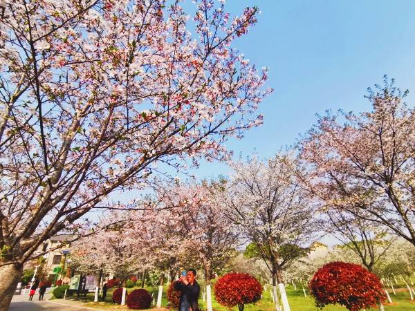 上图:正值武汉花博汇樱花村樱花盛开之季,整个花博汇万余株樱花满园怒放,形成了最浪漫的樱花之季。