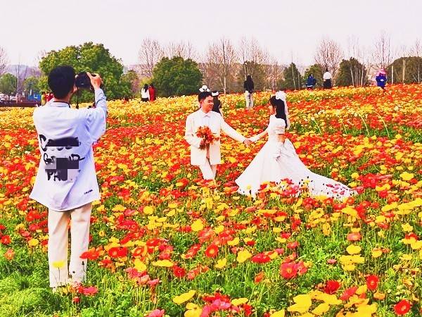 三月底四月初,武汉市AAAA级旅游景区武汉花博汇内郁金香、冰岛虞美人、樱花、二月兰、油菜花、杜鹃花等各大主题花海接续盛开,还会有洋牡丹、紫罗兰、欧洲报春、角堇、金盏菊、紫藤、玉兰、桃花、木香等50多种花卉品种搭配展示,艳美的花海景观吸引众多新人到花博汇景区来拍摄婚纱照。