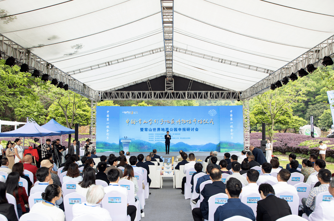 衢州市人大常委会副主任、常山县委书记潘晓辉介绍了常山致力于挖掘地质文化,讲好石头故事, “一块石头撬动一域经济”的精彩篇章。他表示,常山将以此为契机,举全县之力打造世界地质科研、全国研学旅游、华东科普教育“三大高地”,全力争创世界地质公园品牌。