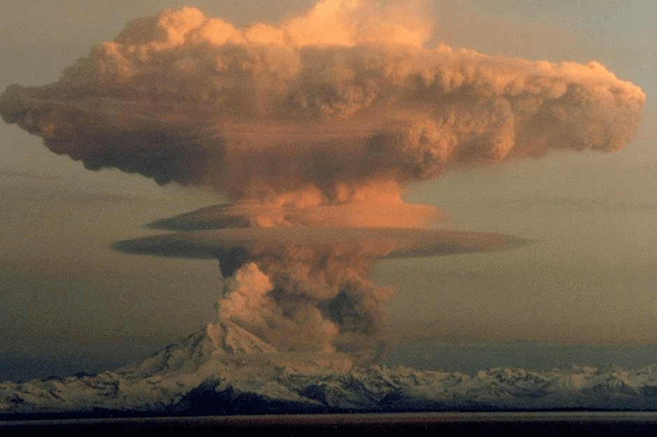 堡垒火山位于阿拉斯加南部的奇米特山脉,是一座活跃的层状火山,最近一次喷发是在2009年。在那一年的3月15日至4月4日之间,大爆炸导致岩石坠落,熔岩圆顶的大小增加了。然而,它最厉害的一次喷发发生在1989年至1990年之间(图片摄于1990年4月),造成了超过1.6亿美元的损失,使其成为美国有史以来第二强大的喷发。这座山峰被认为是阿拉斯加最危险的火山之一,主要形成于过去20万年。