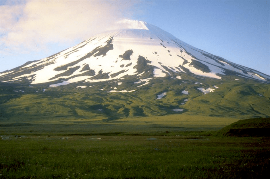 在阿留申群岛发现的另一座火山是雄伟的马库申火山。这座海拔1800米的冰雪覆盖的山峰最近一次喷发是在1995年,当时一小团火山灰和蒸汽从山顶喷出,周围地区有轻微的震动。