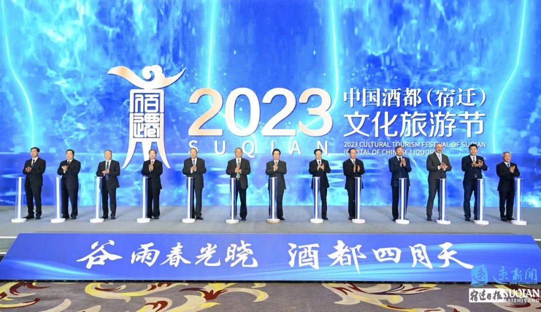 谷雨春光晓,酒都四月天。4月20日,2023中国酒都(宿迁)文化旅游节开幕式举行。江苏省人民政府原副省长李全林,中国品牌建设促进会理事长、国际标准化组织品牌评价技术委员会顾问组主席刘平均,原国家旅游局党组副书记、副局长王志发,原文化和旅游部副部长、国家图书馆馆长周和平,原铁道部副部长、铁路总公司副总经理胡亚东,中国国际贸易促进会原副会长王锦珍,白俄罗斯驻沪总领事安德烈·安德烈耶夫,中国酒业协会理事长宋书玉,市委书记陈忠伟,市人大常委会主任、党组书记王益,市政协主席、党组书记冯岩出席开幕式。市委常委、常务副市长张明康主持开幕式。