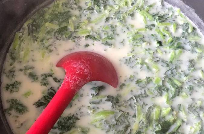 汤洋芋就是熟烂的马铃薯加蔬菜、盐巴煮出来的。口味不重不腻,只有微咸回甘的味道,吃起来肠胃没有负担。