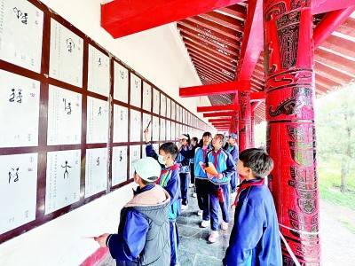 研学的孩子们在识读甲骨文。资料图片