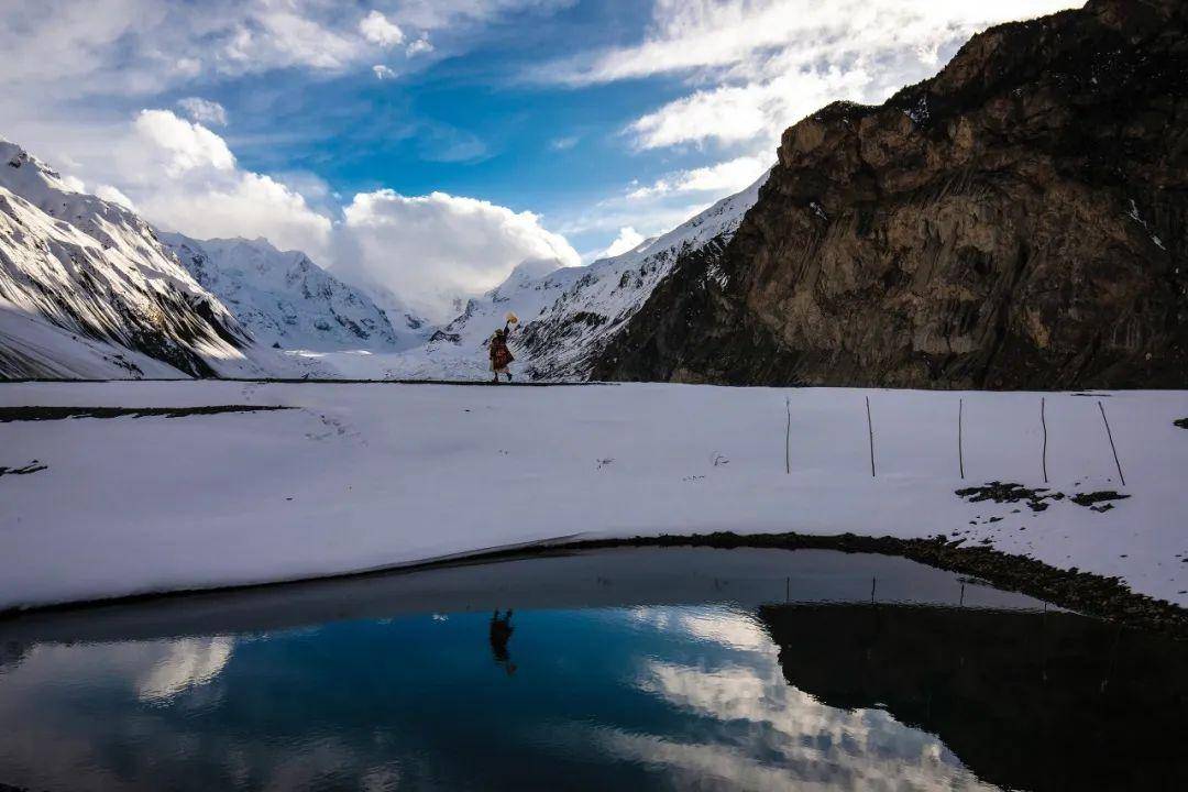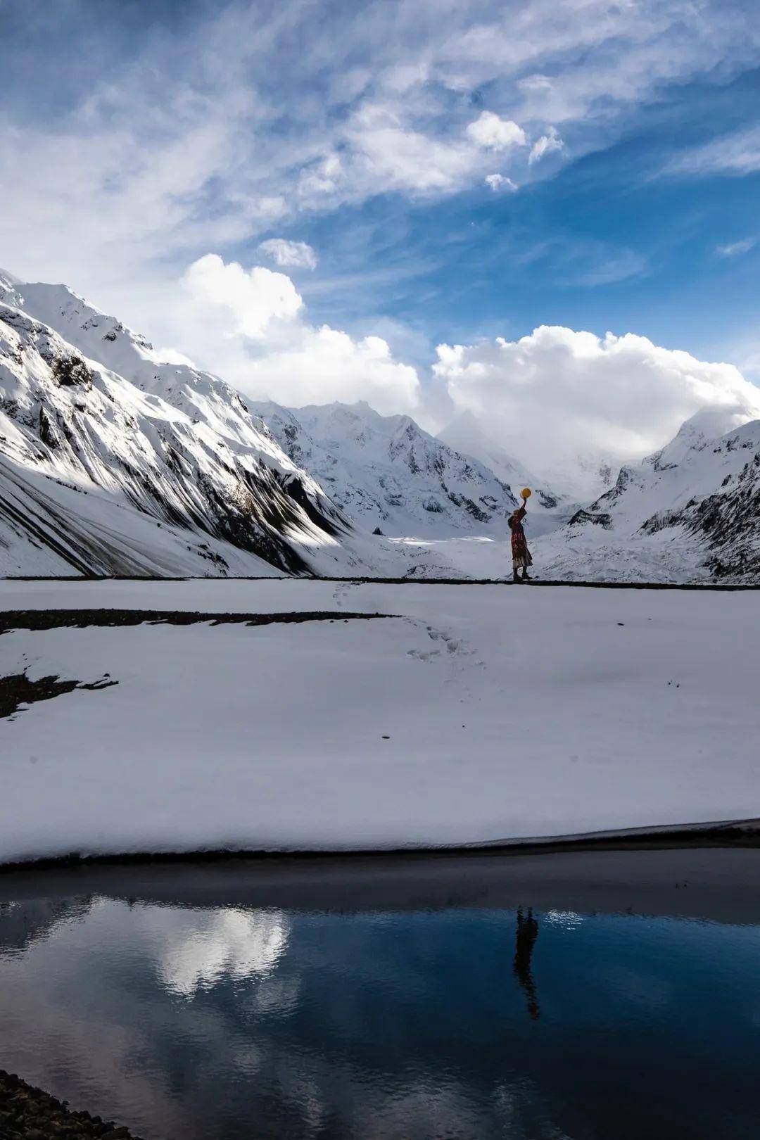 这两张照片是在西藏边坝县的祥格拉冰川前拍的,在这个地方等了2个多小时,拍了不少的照片,直到出现了人物,而且画面中的人物还带了道具,两个气球。有了人物的出现,画面的各种关系就有了。人与环境的大小、色彩的对比,我对这个环境就有更加明确的认识与了解。