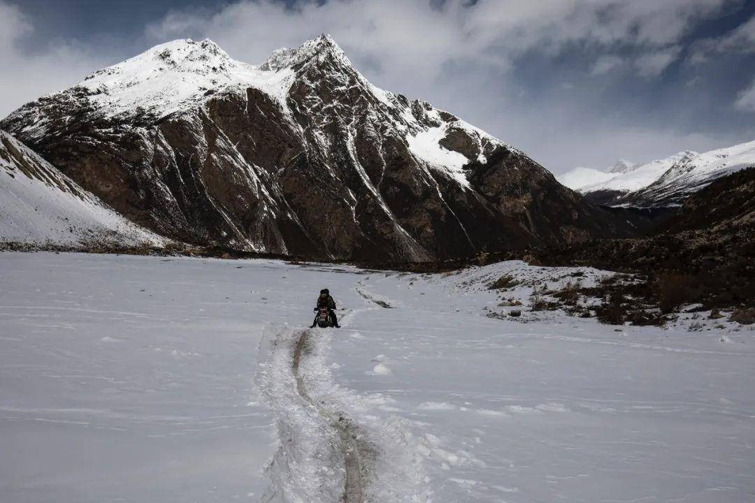 这张是从冰洞出来,坐摩托车下山的路上,我在后面的摩托车上拍的一张记录照片。画面中的线条、人物与环境之间有一个关系,即使是记录照片,也会有不一样的感受。