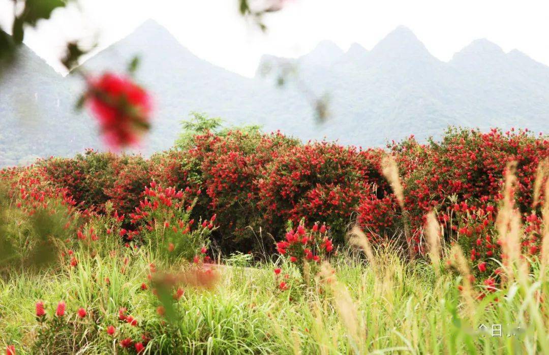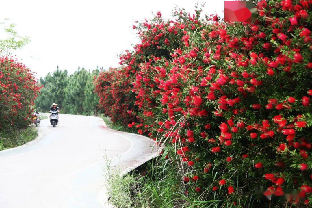 近日,恭城镇古城村一处健康骑行道两旁的红瓶刷(又名红千层)花开正艳,当天气晴好时吸引不少群众前去拍短视频及观赏、打卡。据了解,红瓶刷又称红千层、瓶刷子树、金宝树等,为桃金娘科的常绿灌木或小乔木,红瓶刷属阳性树种,喜温暖、湿润气候。