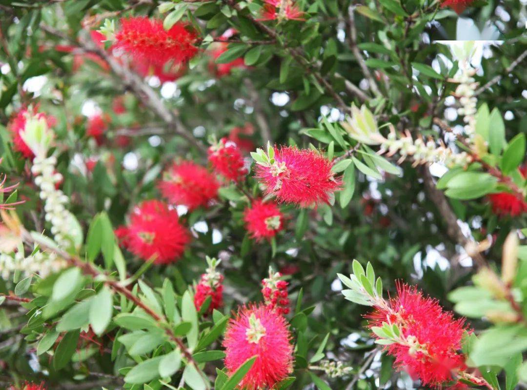 红瓶刷能耐烈日酷暑,原产澳大利亚。红瓶刷的叶呈披针形,似罗汉松叶终年不凋零,四季常青。花稠密,聚生于顶端,花期4-8月,花形极为奇特,呈穗状,且色泽艳丽,常作插花、观赏、园林绿化树等。