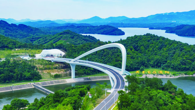 新近建成的景詹沙河桥犹如一把弦琴横卧在溧阳天目湖畔,奏响公路+旅游大美之音。 顾佳舒 蒋文超 摄