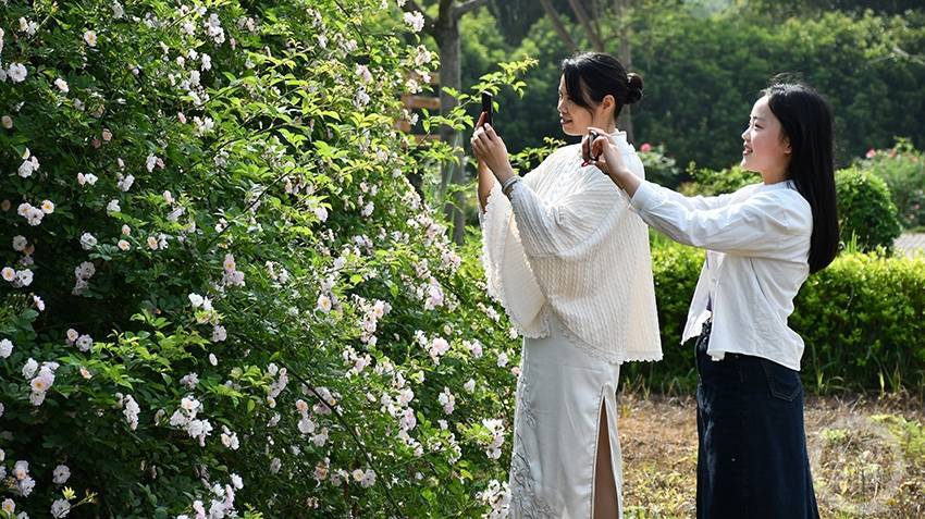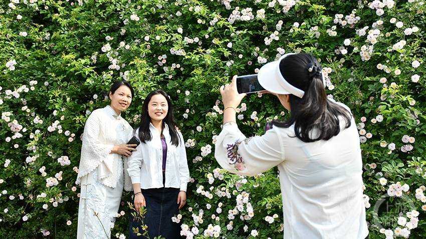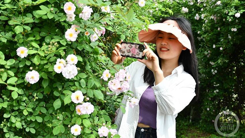 游客向敏高兴地说道:“这些蔷薇花姹紫嫣红,春风吹过,空气里弥漫着沁人心脾的香甜,映入眼帘的是赏心悦目的春日美景,太漂亮了!”“一路走来,这些蔷薇花绚丽多姿,美不胜收,给人一种花开成海,满目皆景的感觉。”游客周敏告诉记者,“这样的美丽景致,就想一直待在这里拍照、打卡。”