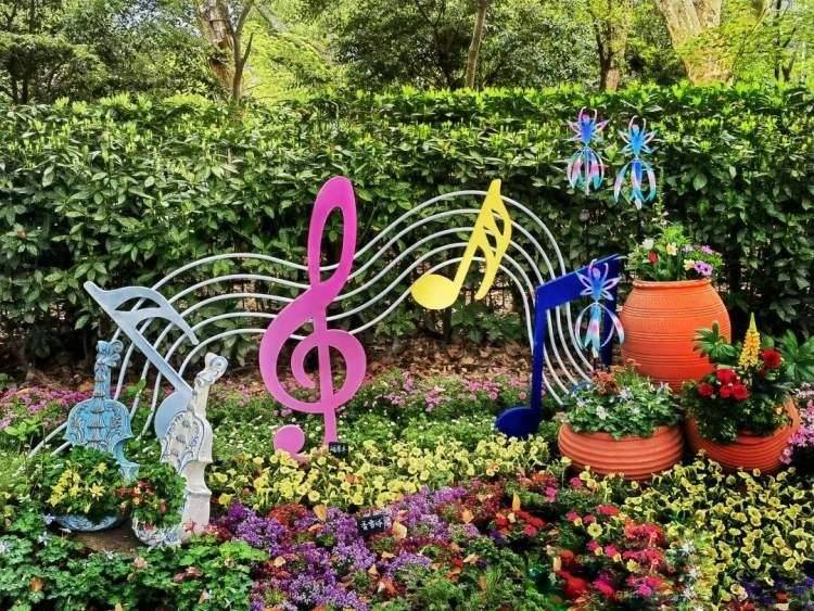公园的“老朋友”们都知道,公园西门附近每逢花展,总有别样的巧思设计。今年这里打造“锦绣花颜”,百花竞放温暖人心。八组室外景点围绕春季主题,以竹艺、铁艺等各式造型材料,结合绿雕、花园、花境等形式充分展现春日百花争艳的盛景。