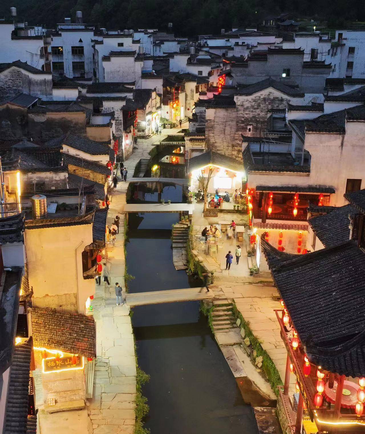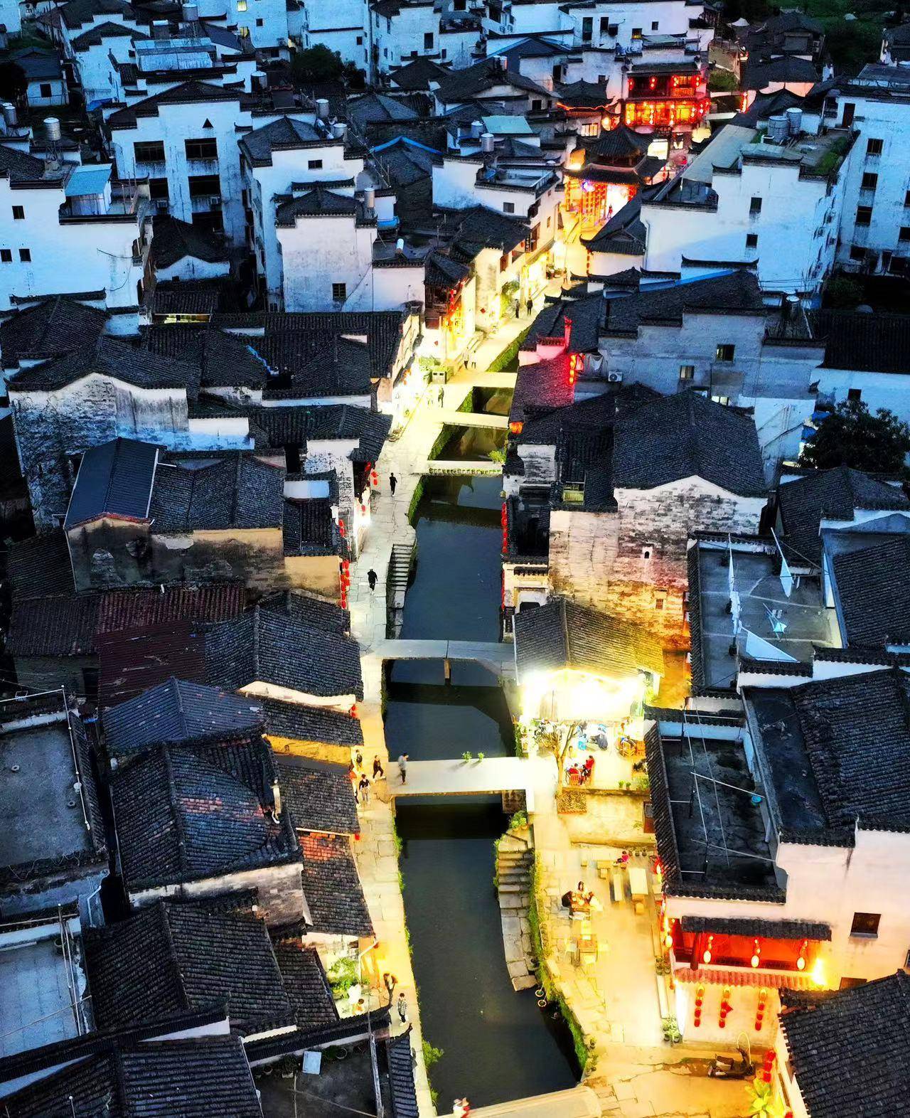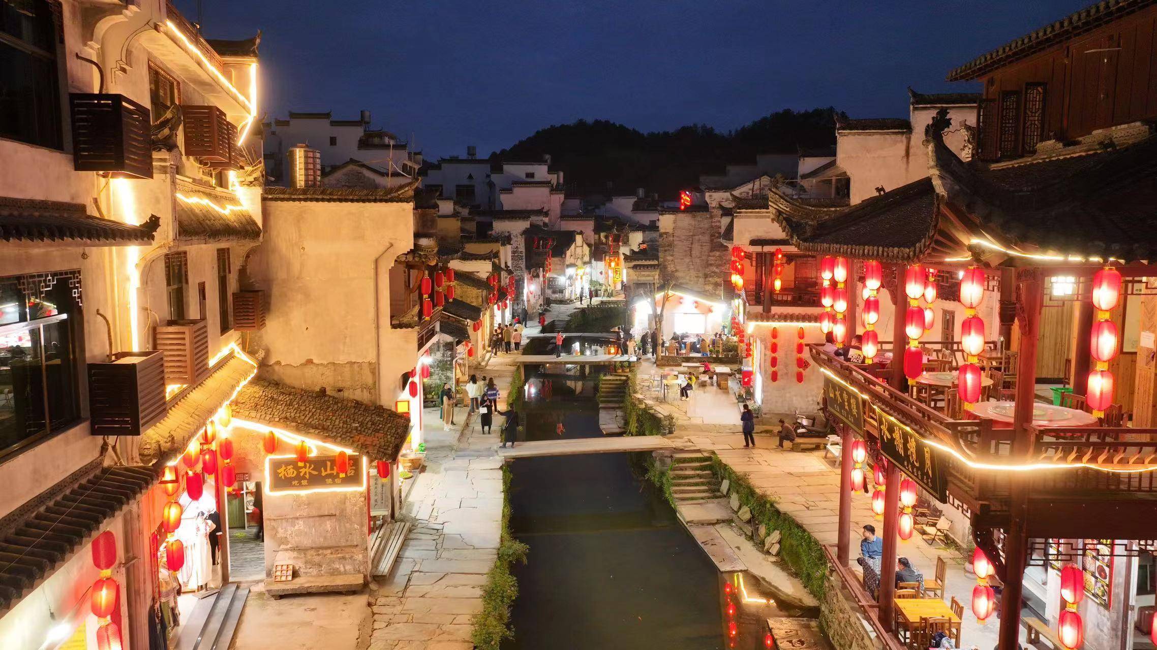 该村落群山环抱,山清水秀,风光旖旎。村中明清徽派古建遍布、民居宅院沿溪而建,依山而立,粉墙黛瓦、参差错落;村内街巷溪水贯通、青石板道纵横交错,构筑了一幅小桥、流水、人家的美丽画卷。