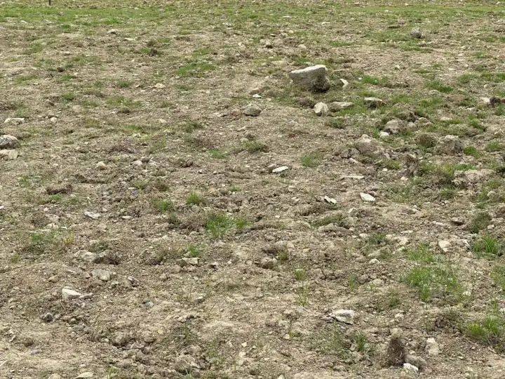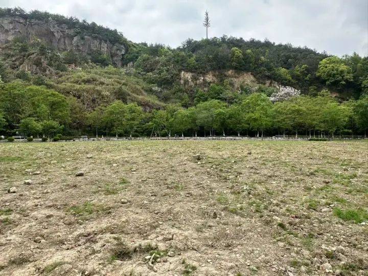 圆形大空地上残留着绿地的痕迹,稀稀疏疏的小草仍在石头、瓦砾中顽强的生长。大部分仍被黄土所掩盖,可以看到十分尖锐的小石砾石块夹杂在黄土之间,甚至有大块的中型石头散落其间,若不是周边仍有树木,这块圆形大空地看起来更像是亟待整修的“工地”。