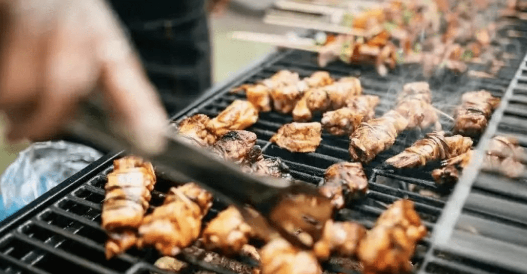 自然间 天幕下美好的夜晚等粉色的晚霞与皎洁皓月烧烤盘上肉肉欢快得跳舞山间烧烤的快乐,让美味加倍
