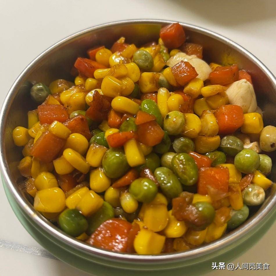 这个炒三丁是黄豆玉米加胡萝卜丁,爆香大蒜再翻炒三丁,炒得很入味,红绿黄三色相间很诱人,单吃配米饭都是一绝。好吃的青椒肉丝那叫一个下饭,肉丝腌制入味,下热锅翻炒,等变色捞出备用,再倒入豆豉青椒葱段一起炒,炒到青椒变色又倒入肉丝继续翻炒,炒熟捞出,整个过程时间很短,主要是火候要足,多一分会老少一分不熟,这样鲜嫩多汁咸香可口的青椒肉丝,可是下饭一绝哦。