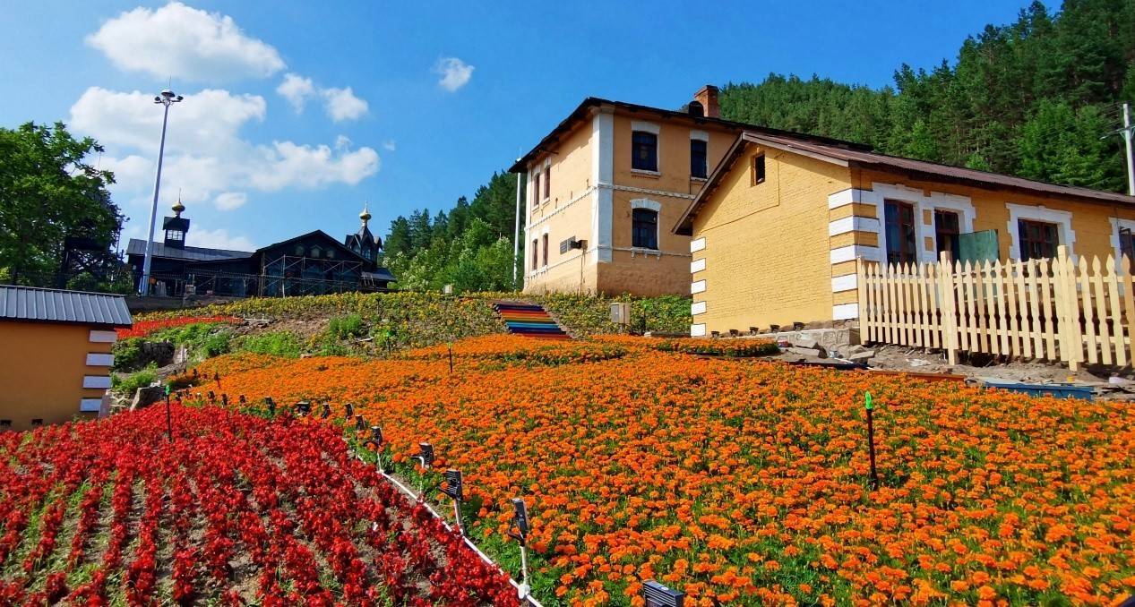 横道俄罗斯风情小镇鲜花盛开(央广网发 海林市委宣传部供图)