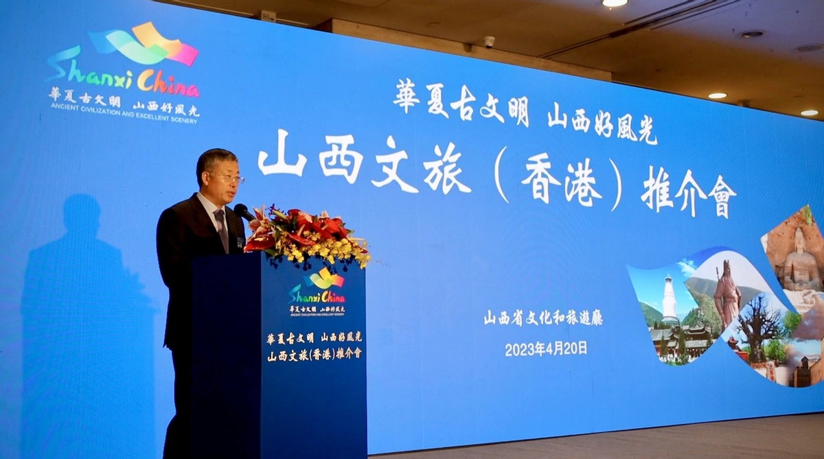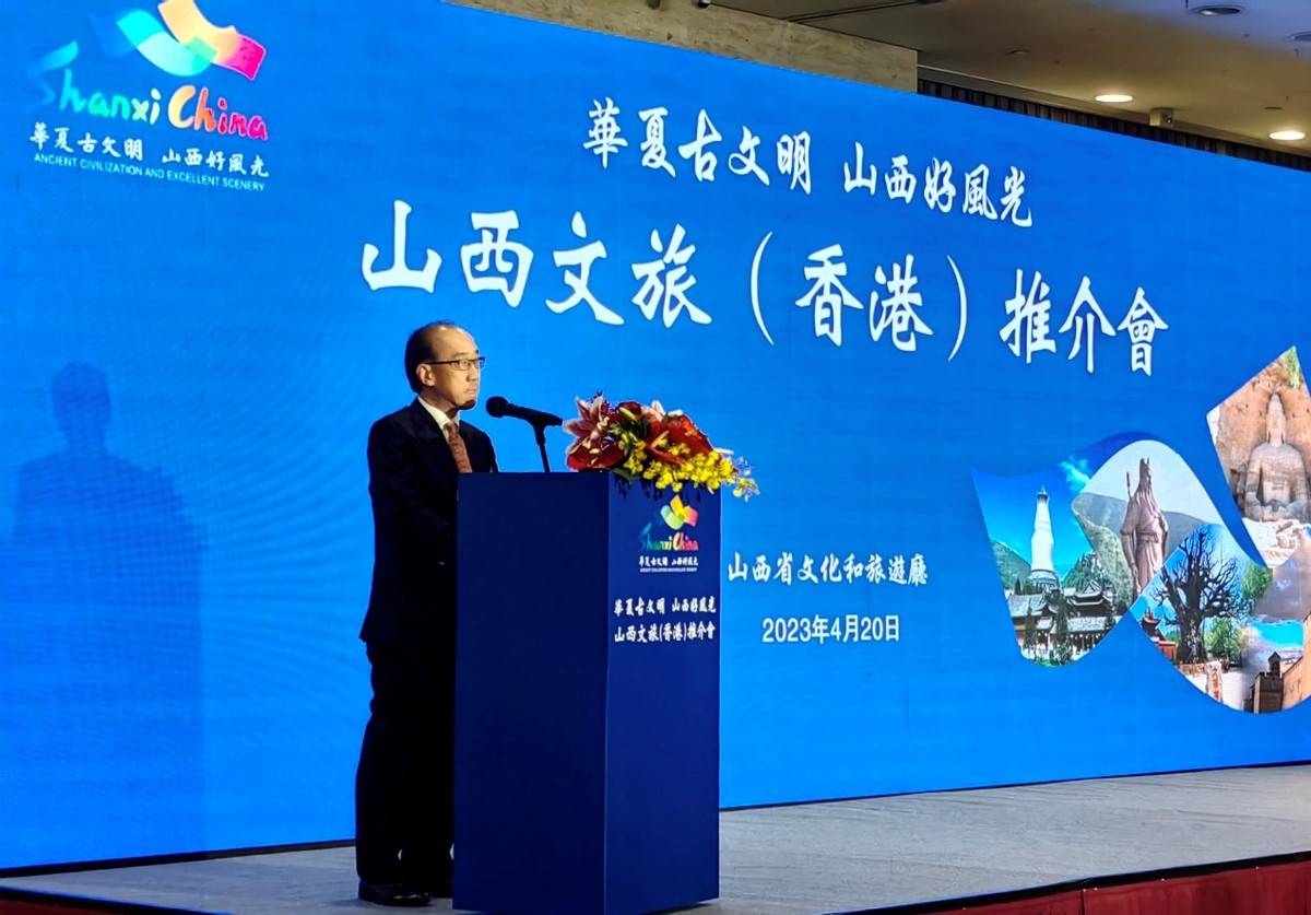 山西省文化和旅游厅副厅长、一级巡视员李贵出席活动并致辞。他表示,香港是全球最具国际化和最开放的城市之一,同时也是久负盛名的国际知名文化旅游胜地。近年来,晋港两地互访频繁,文旅行业交流、合作愈加密切,且发展势头良好。希望通过这次文旅推介,晋港两地在文化旅游方面能够深度合作交流,借力香港优势,吸引更多的海内外旅客来山西品读历史、感知文化、观光旅游、休闲度假,吸引更多的世界各地有识之士来山西投资兴业。