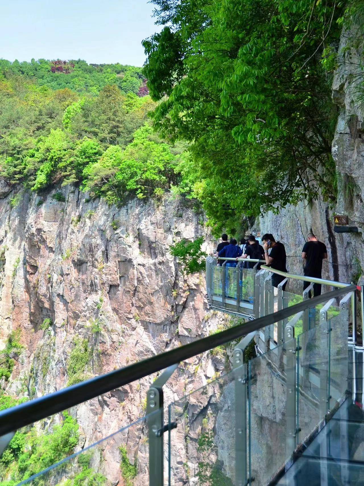 雪窦山至高点。玻璃栈道能看到整个山头景色、近距离观赏浙东第一瀑,或者看清晨第一缕日出,非常治愈。
