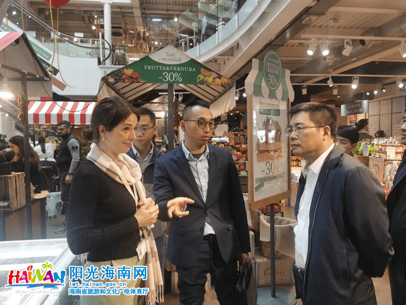 在Eataly米兰旗舰店,李辉卫一行就商超零售新模式和运营理念与Eataly零售总监 Mariana Ferramosca 进行探讨。李辉卫表示,餐饮是旅游产业要素的一个重要组成部分,对打响旅游品牌、提高旅游质量至关重要。Eataly品牌具有在全球各地开设门店的丰富经验,希望品牌能在海南开设旅游餐饮服务场所、举办美食文化交流活动等,丰富海南旅游产品供给,完善“吃、住、行、游、购、娱”全链条旅游业态,共同打造世界美食消费中心。
