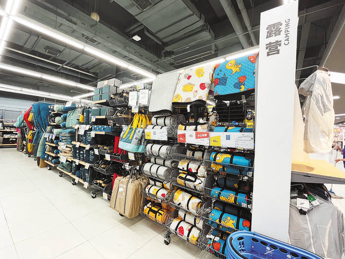 在位于政务区的一家户外用品商店内,露营用品摆放在卖场入口处最显眼位置。