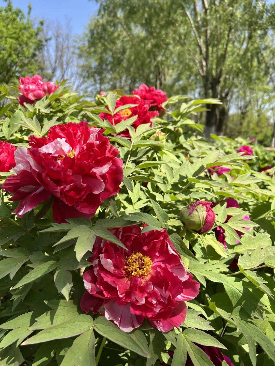 北京通州漷县集体林场:牡丹种植面积共1300余亩,其中园内565亩,园外油用牡丹800亩,共有52余种。牡丹园周边还种植有月季、蔷薇、海棠等多种植物。为增强市民体验,园内举办“汉服巡游”、非遗手工体验、摄影大赛等特色活动。展期为4月28日—5月3日。