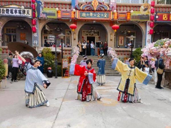 与此同时,张学良故居景区还在滨江道与山东路交口处,设置了主题为“春风十里,我在张学良故居等你”的融合海棠花元素的民国风打卡点位,演员身着复古服装进行现场表演并与现场观众互动,让市民游客近距离感受天津的历史底蕴。