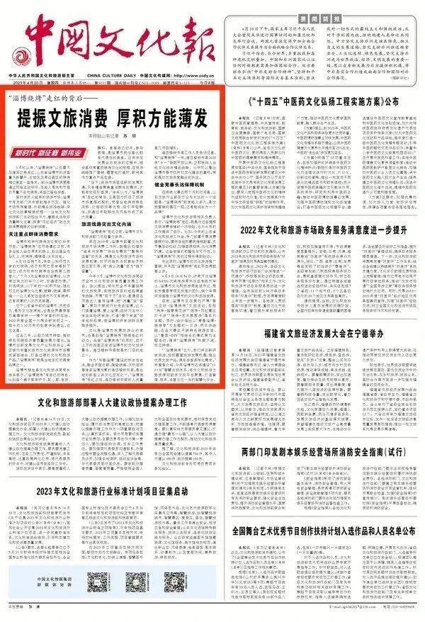 4月20日,《中国文化报》头版头条刊发《“淄博烧烤”走红的背后——提振文旅消费 厚积方能薄发》,全文如下: